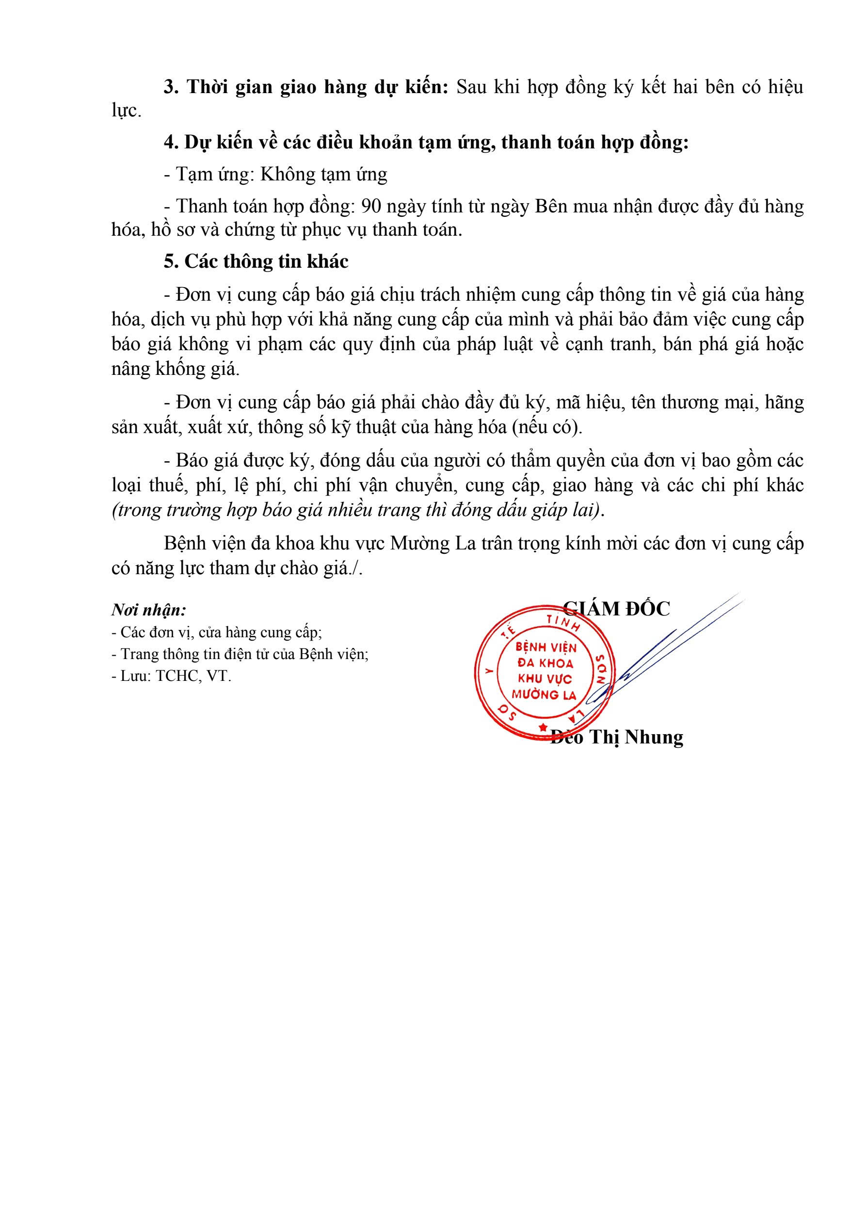 THÔNG BÁO CHÀO GIÁ CUNG CẤP VẬT TƯ, CÔNG CỤ, ĐỒ GIA DỤNG, DỤNG CỤ VĂN PHÒNG PHẦM PHỤC VỤ CHO HOẠT ĐỘNG CỦA BỆNH VIỆN ĐA KHOA KHU VỰC MƯỜNG LA