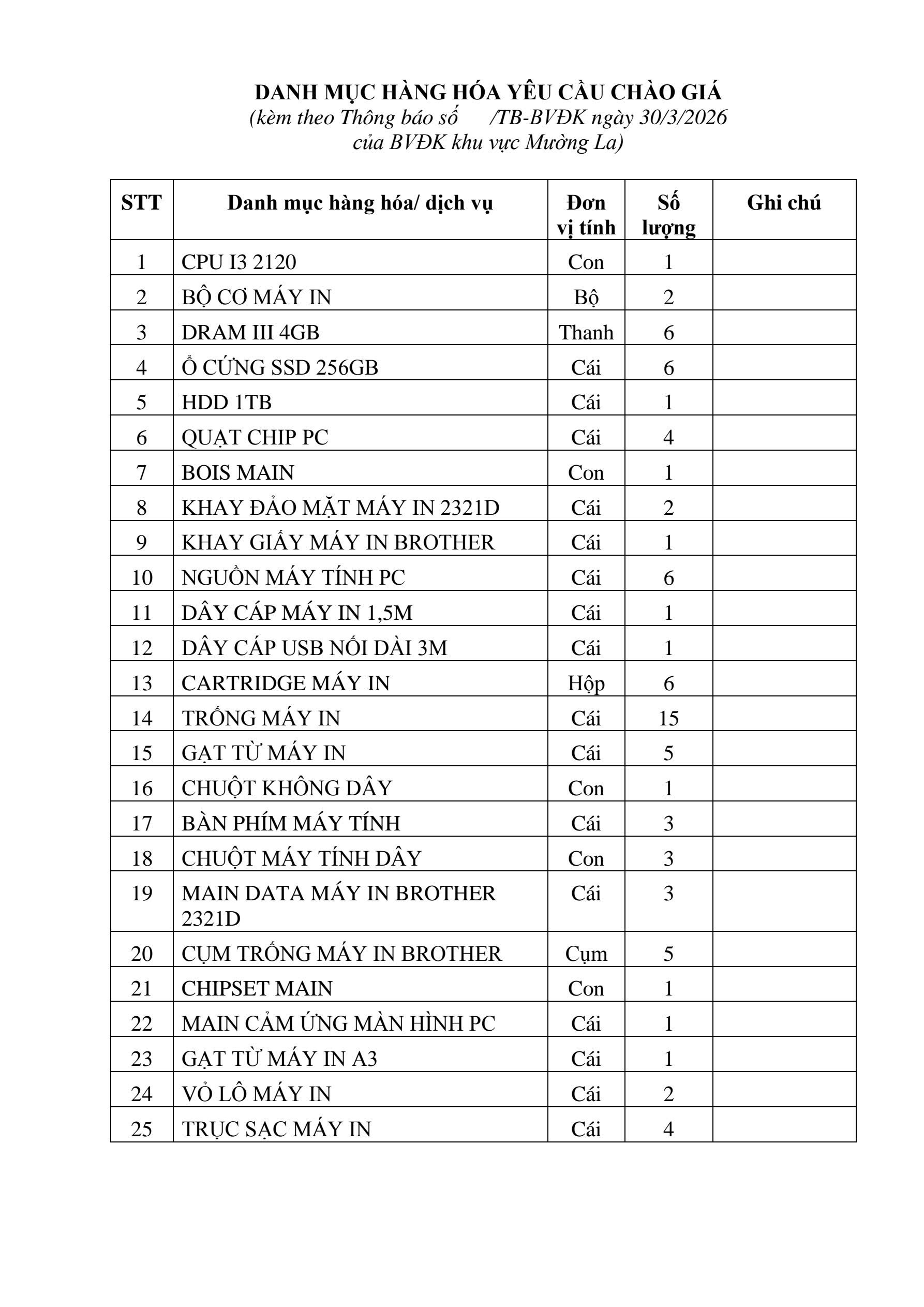 THÔNG BÁO CHÀO GIÁ CUNG CẤP VĂN PHÒNG PHẨM VÀ VẬT TƯ VĂN PHÒNG PHẨM PHỤC VỤ CHO HOẠT ĐỘNG CỦA BỆNH VIỆN ĐA KHOA KHU VỰC MƯỜNG LA